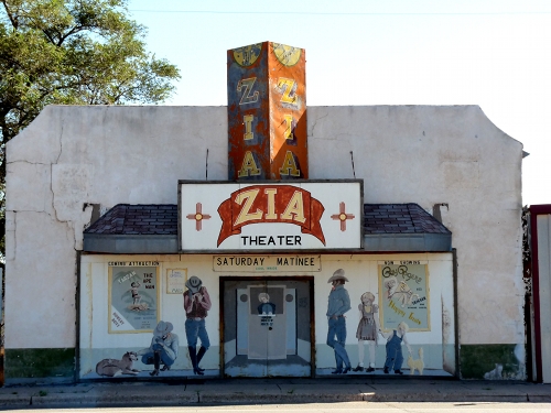 my friend tag christof is obsessed with dying buildings. so i always take pictures of them now. this is the zia theater in fort sumner, new mexico – a dead cinemahouse in a dying little town.