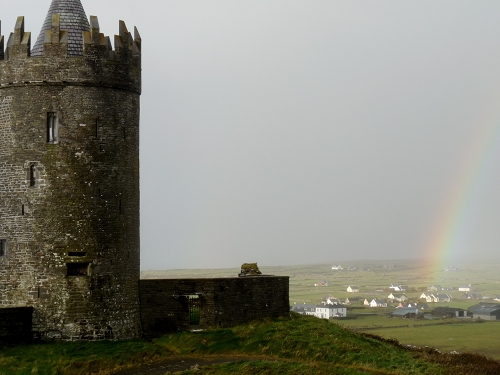 here, in county clare, where a rainbow meets doonagore castle flanked by emerald green, it takes little imagination to envision a leprechaun hording his pot of goodies just below.