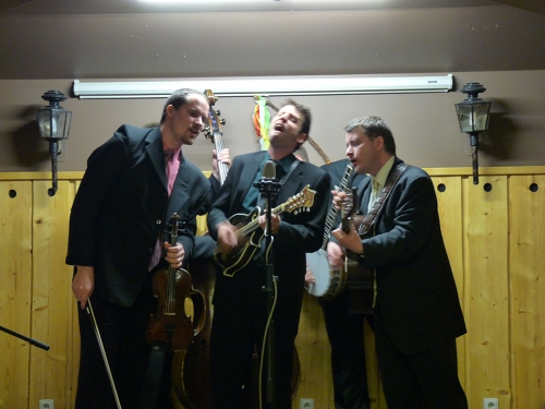 well, i am glad the czechs like bluegrass, because bill and i have managed to take in some really great music since we’ve been here, much to my surprise. the first bit o’ bluegrass we discovered was the open bluegrassovy jam praha, which is basically an impromptu session where a bunch of pickers – professionals and hobbyists, it would seem – get together in a pub and play tunes. a lot of them are traditional bluegrass songs that someone has translated into czech, which admittedly disturbs me a little bit, but all the riffs are the same and there were some half-decent pickers around the group the two nights we went.