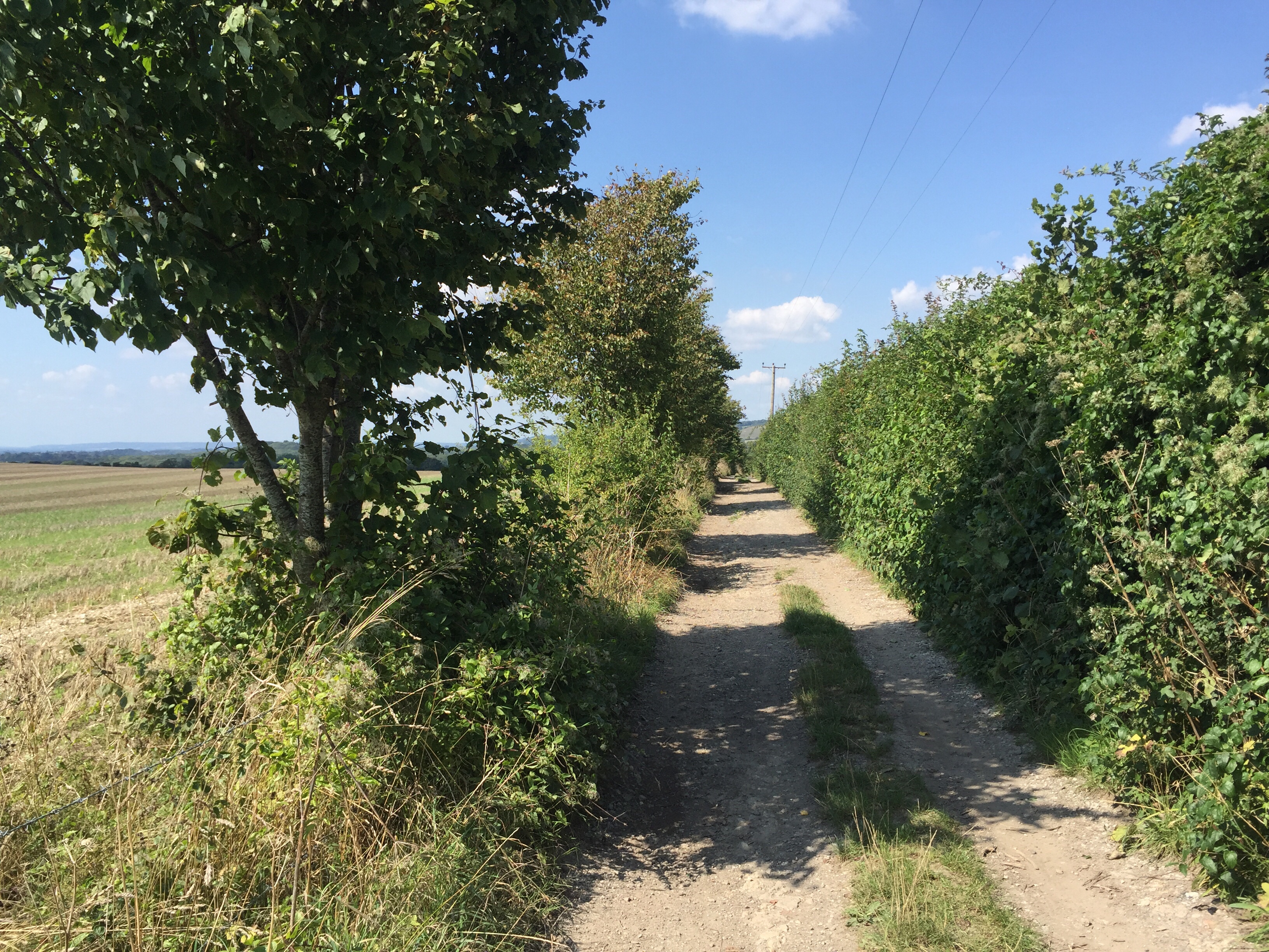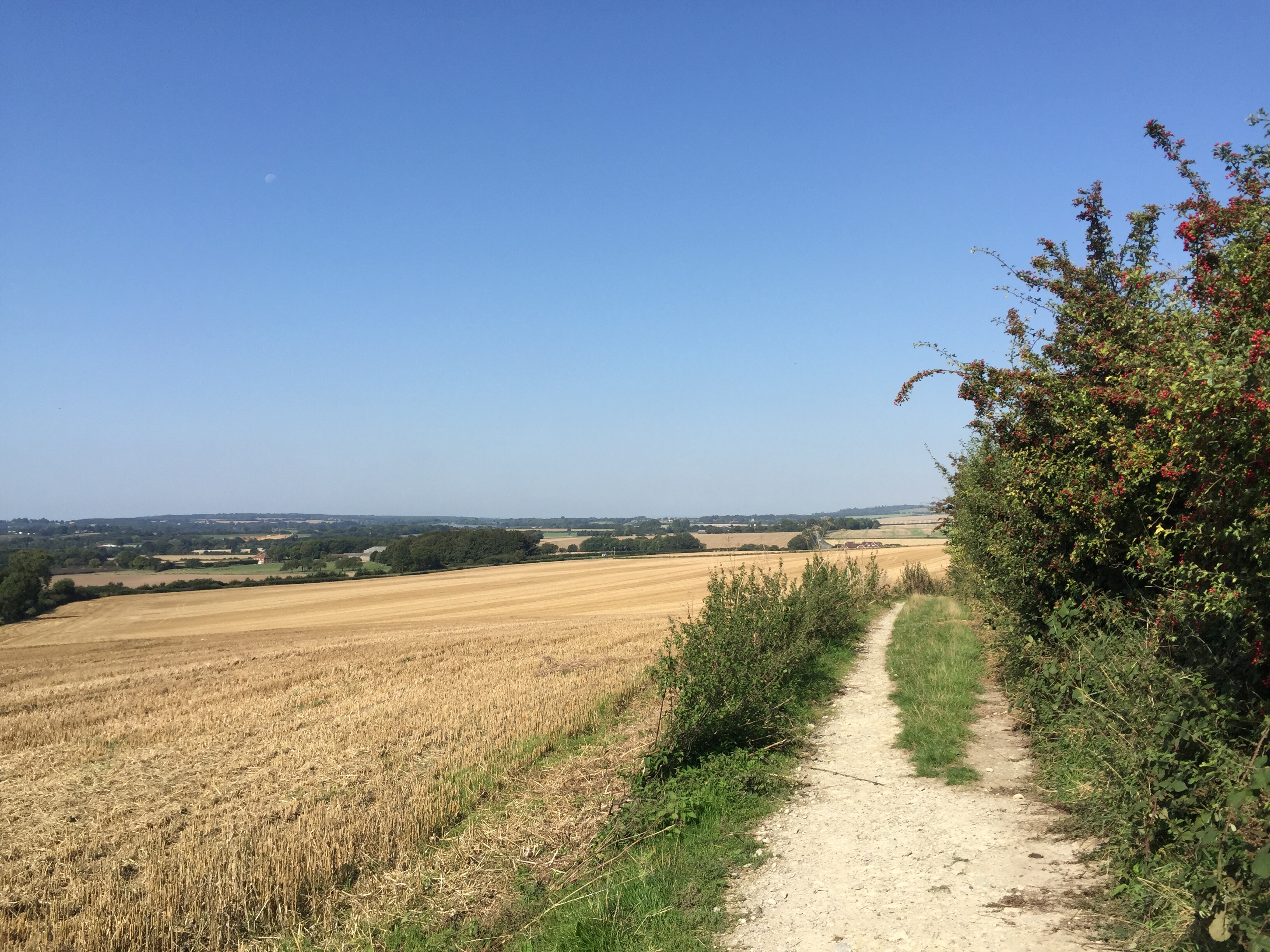 later, past lenham, then harrietsham. more holloways, more fields, more hillsides, northwest forever. the path is straight and unwavering with few ups or downs and virtually no turns. just before hollingbourne, where i’d planned a refreshment at the 13th century coaching inn (and aptly named) the dirty habit, the path opens and the air stalls and becomes almost unbreathable. the whole world goes quiet.