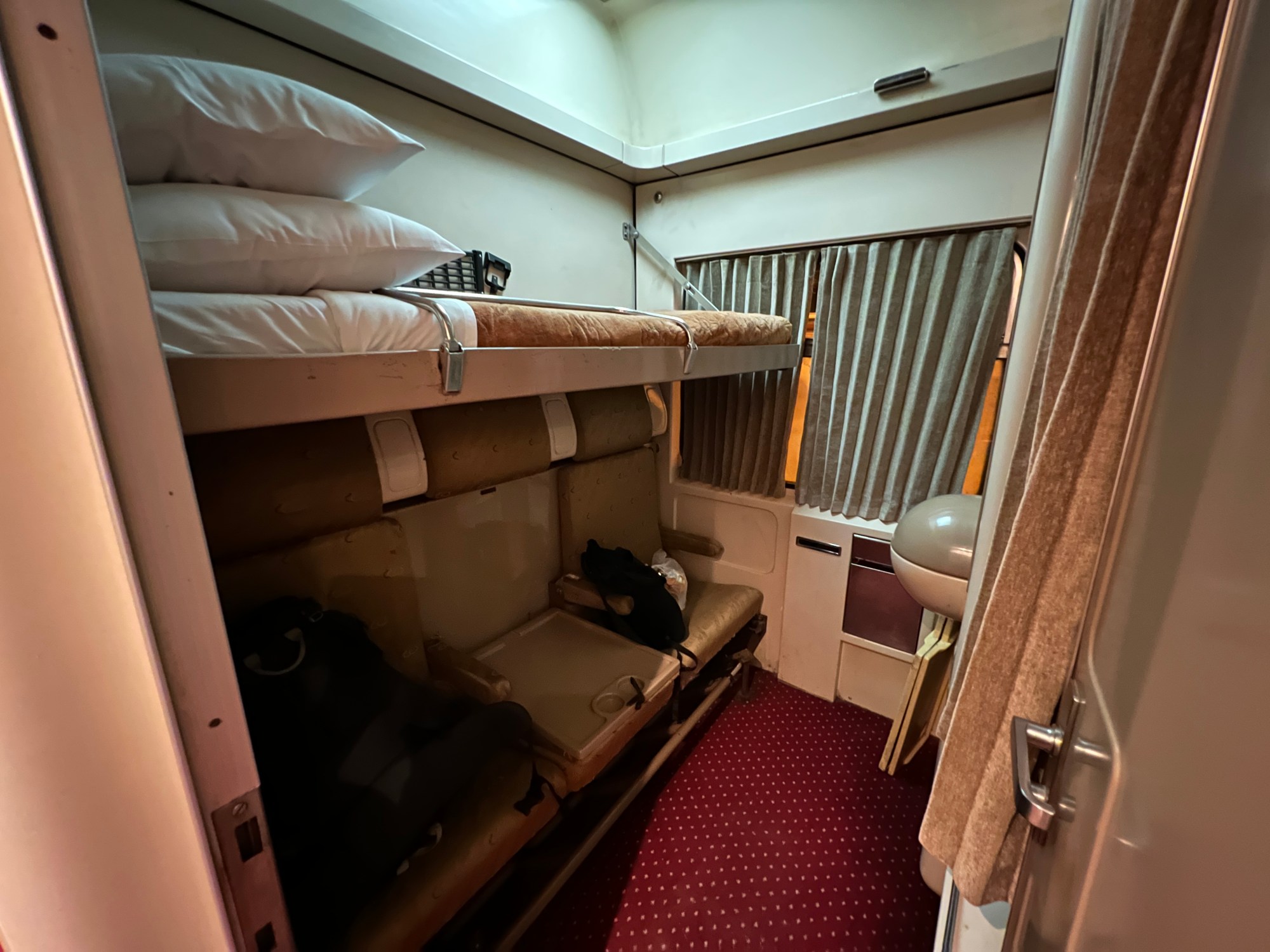 Around 8 o’clock that evening, covered in a layer of pyramid dust, I boarded the Watania Sleeper, a night train that runs the length of Egypt up the Nile Valley, from Cairo south to Luxor. I had a sleeper berth to myself which I cosied into after a very long wait on a crowded, narrow platform at Giza Station. I slept like the dead as the train creaked slowly across Egypt and rose with the sun and stood in the corridor outside my berth, facing east, feeling the sunrise somehow more ancient here as it cast a prehistoric orange over farmers’ paths that weaved between sugarcane fields.